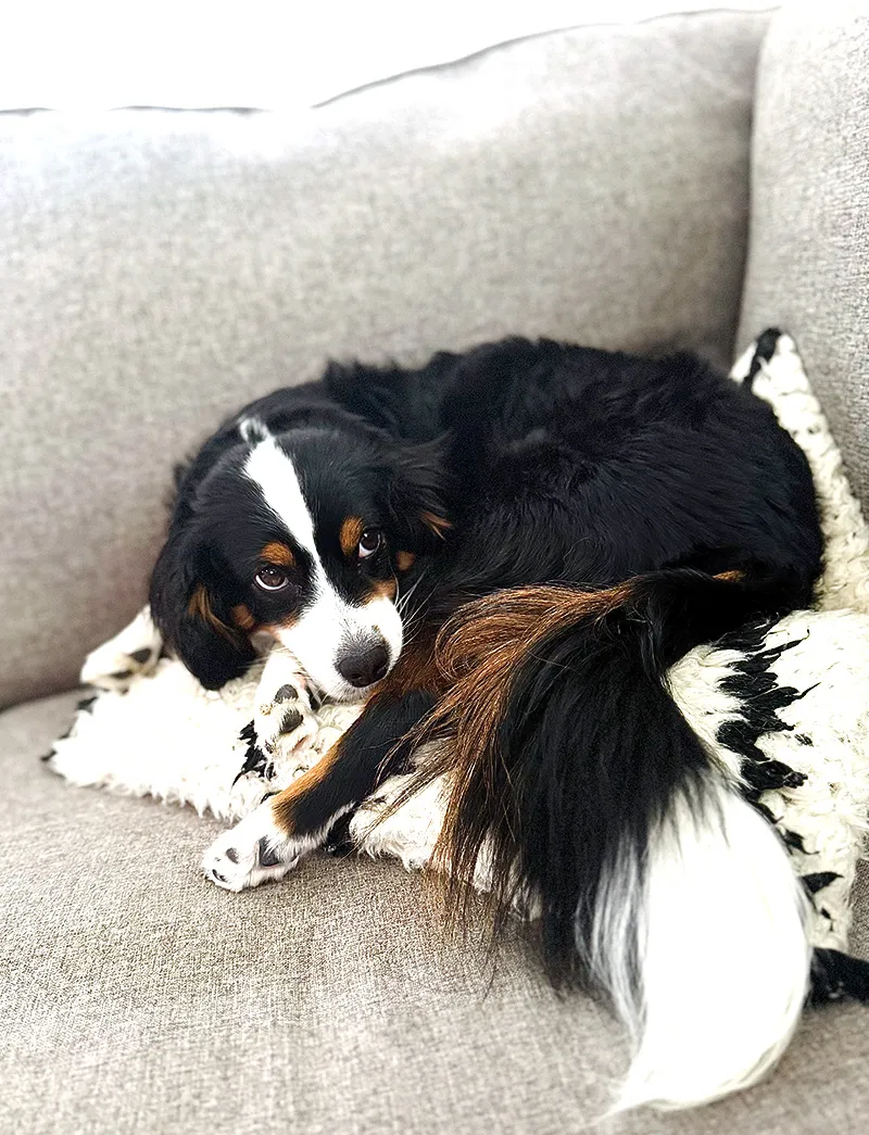 Meet Berne, She is our F1 petite Bernedoodle. Berne is 17 lbs. She has a great sweet personality, she is always the first one to come up to new people. She is very affectionate and her puppies make great emotional support dogs or family pets. She is very laid back and rarely barks.
