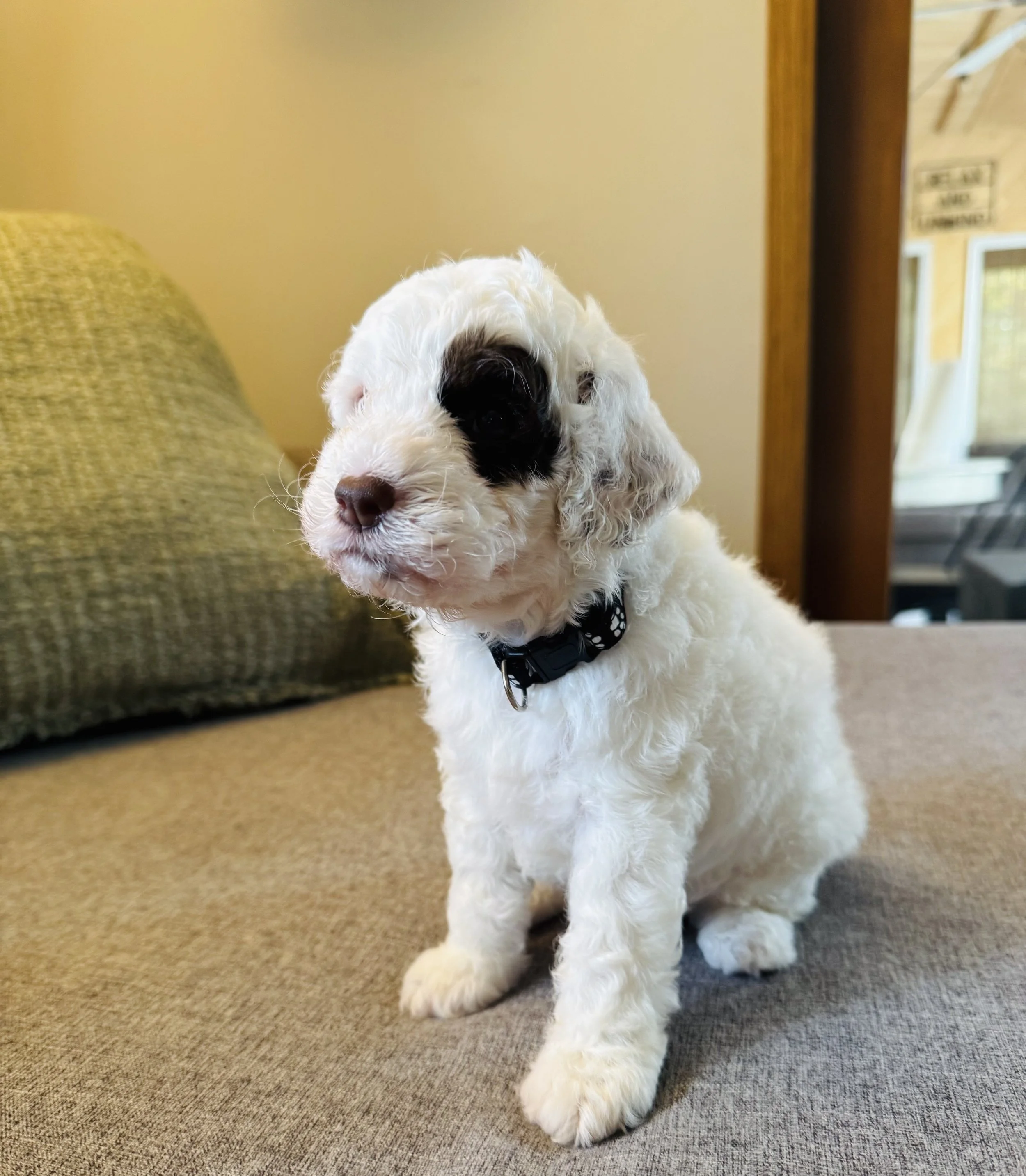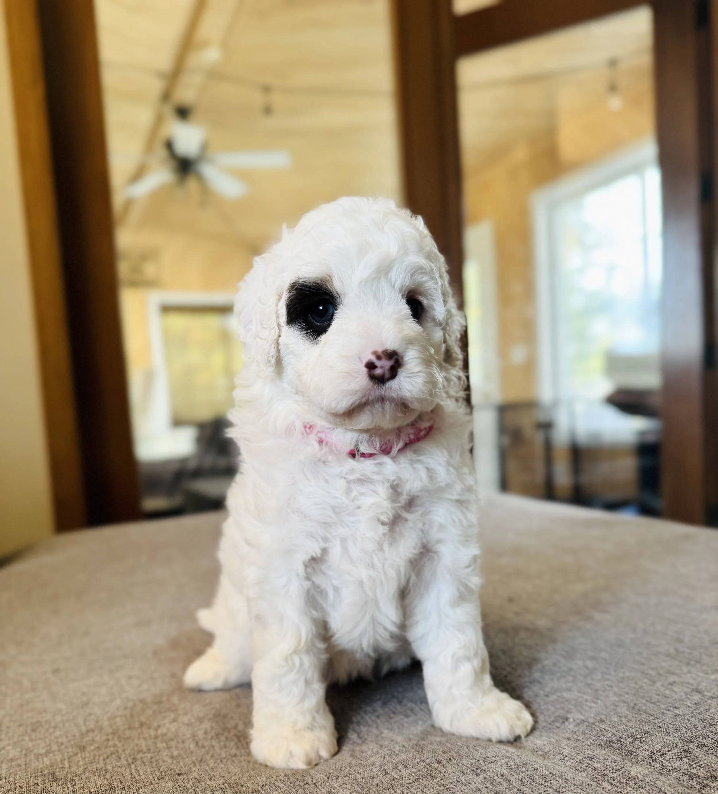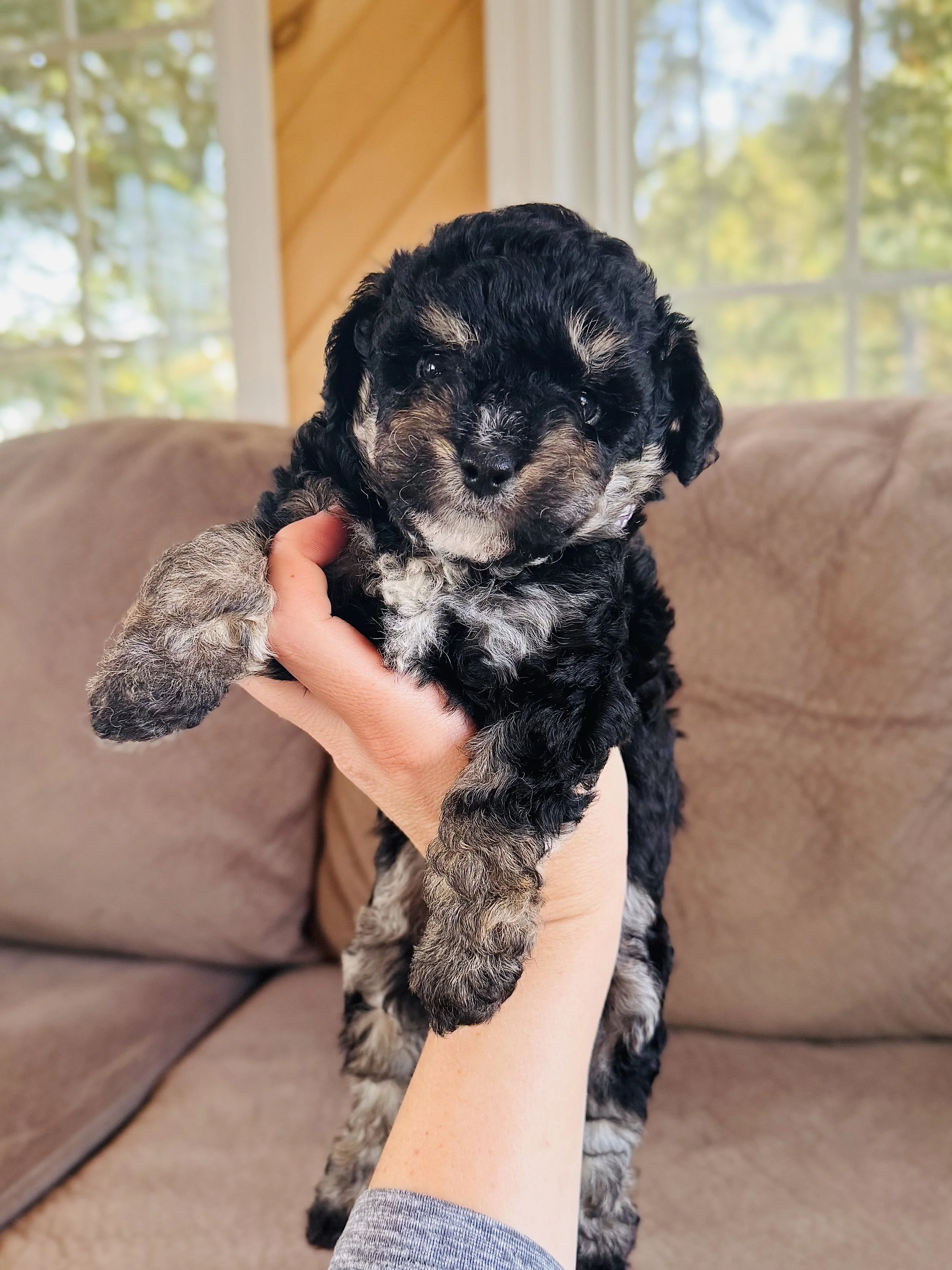 Berne has 4 puppies left, 1 Male and 3 Females in her litter of F1B Petite Bernedoodle litter. These little cuties will stay tiny and be between 12-18Lbs full grown. They will be ready to go October 18th.