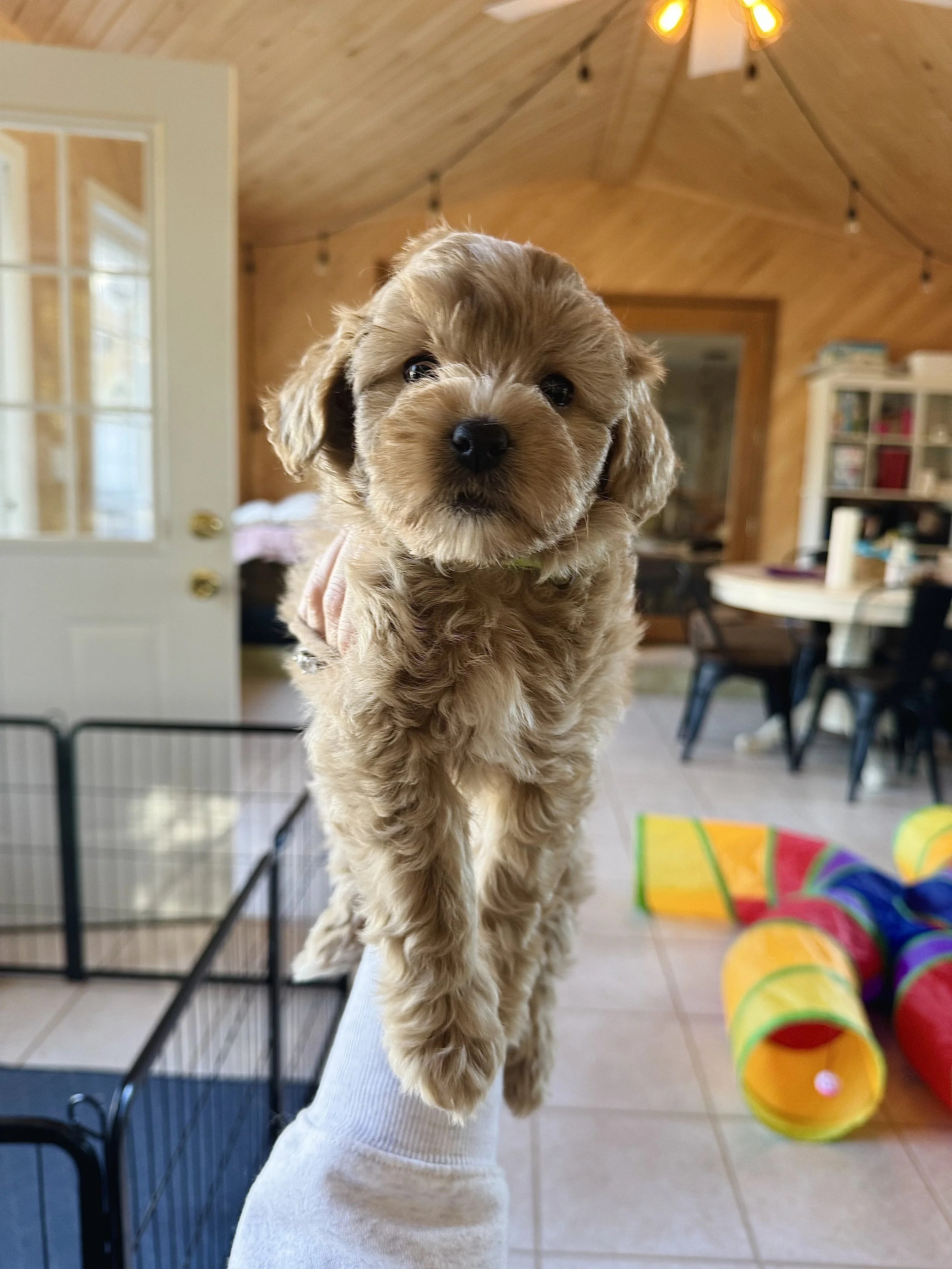 Abby Our Cockapoo has 1 adorable Male puppy ready to go. He is light apricot in color. He will be 12-15lbs full grown. Call, Text or Email for more info.