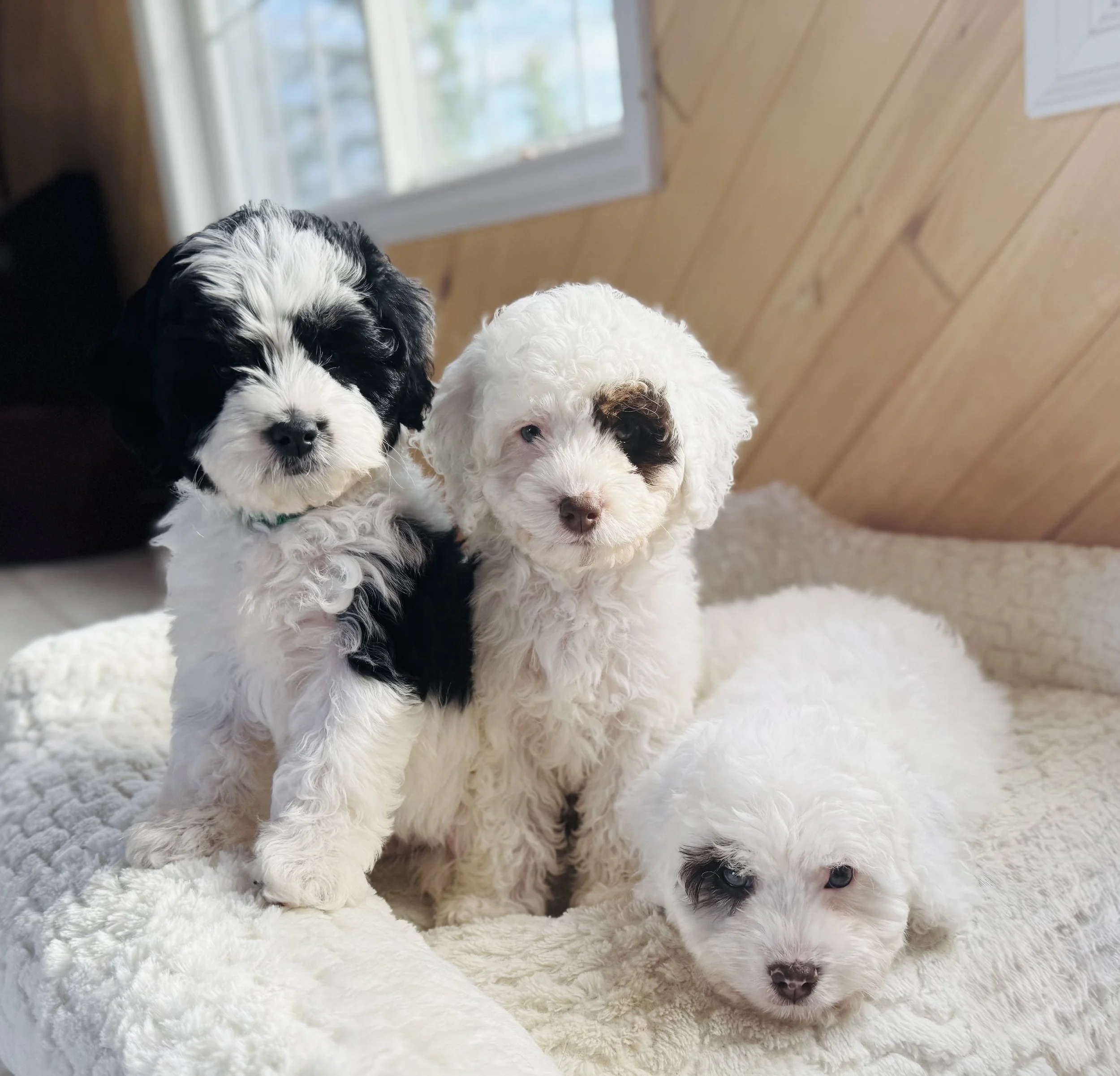 Stitch is a F1B Petite Bernedoodle. She has a great calm temperament and is extremely smart. She is 11 weeks old and knows how to sit, shake, laydown, kennel and is almost fully potty trained. She would be great for a family looking for a little older of a puppy that is already trained. She also sleeps all night in her kennel. Stitch will be around 12 lbs full grown and is hypoallergenic. Please call, text or email with any questions!