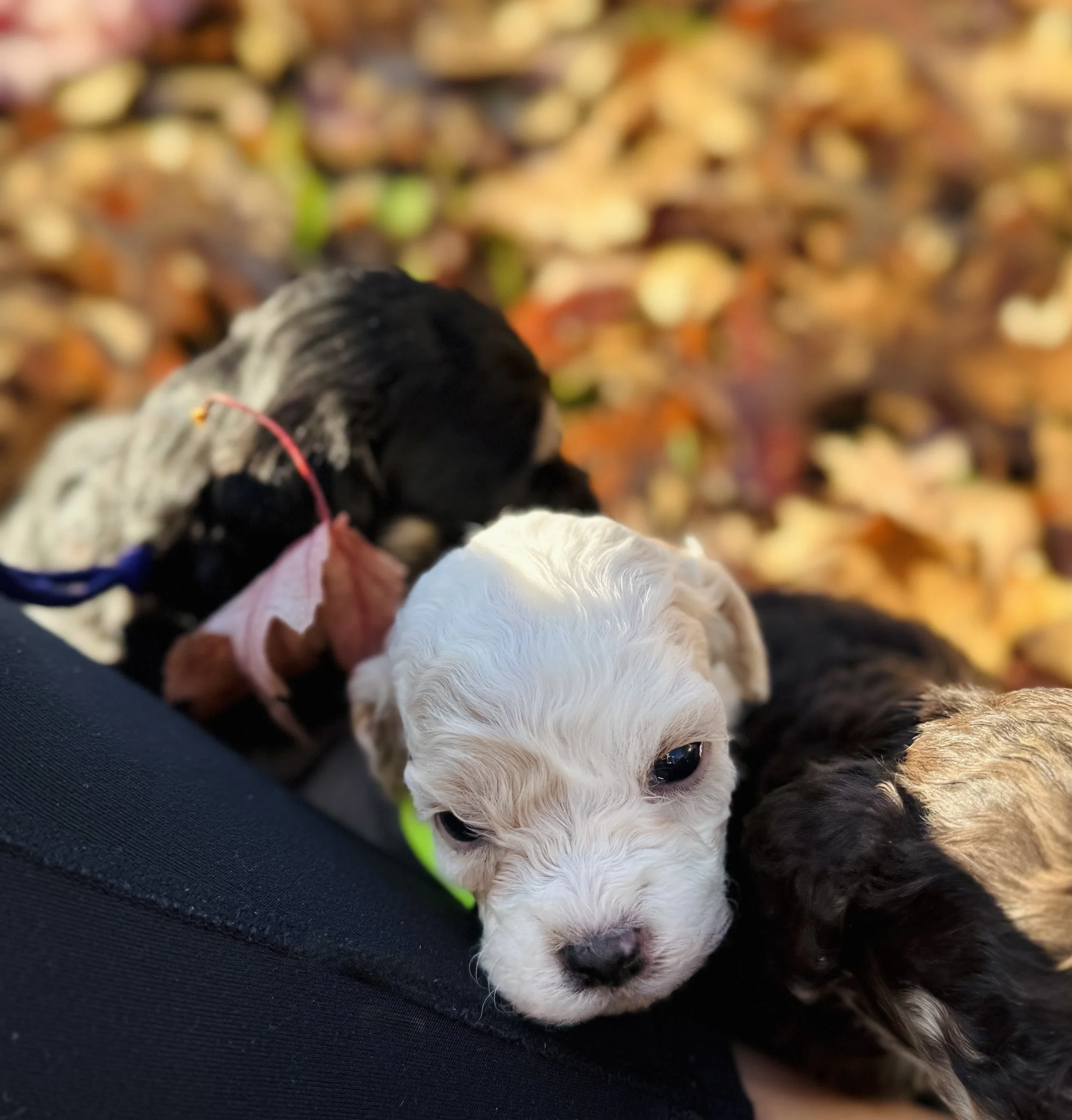 Chloe has 3 sweet F1B Cockapoos available, 1 Female and 2 Males. They will get to be around 15Lbs full grown. They will be ready for their new homes November 1st. Please call, text or email with any questions.