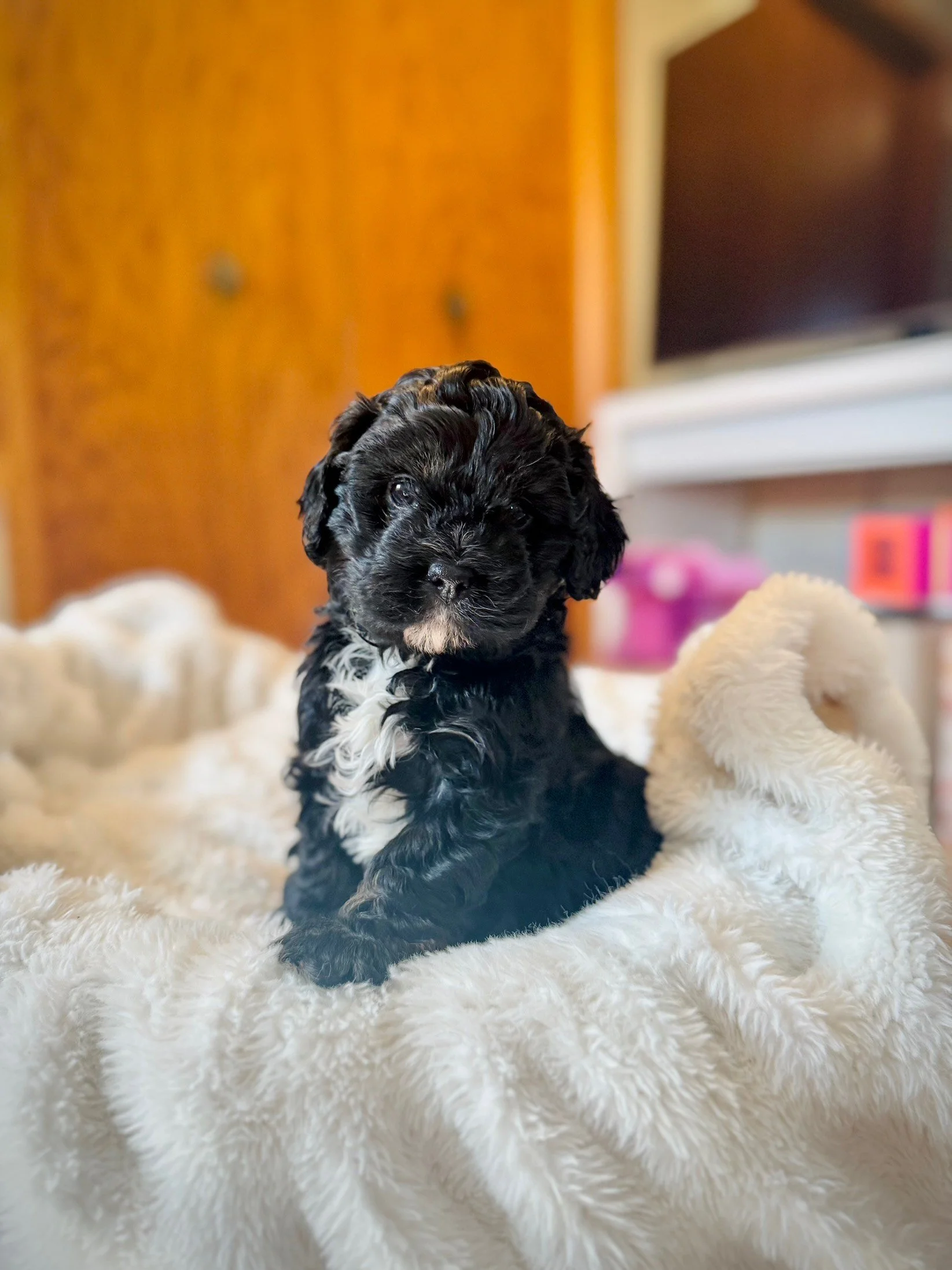 Mama Lizzie is due to have tiny toy covapoos around December 14th. She was bred to our 5lb poodle and will have tiny black and tan along with apricot puppies. lizzie is 75% percent lap dog 25% goof ball (haha) she is so loving just like the typical cavalier!